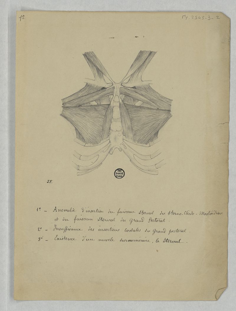 Notes sur une anomalie musculaire découverte à l'autopsie de l'enfant S..., agée de 3 ans 1/2, morte de diphtérie à l'hôpital Trousseau (pavillon Bretonneau)