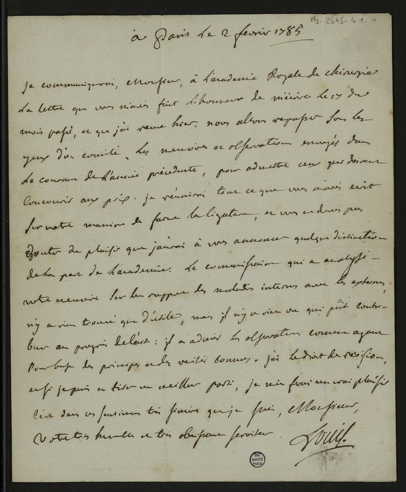 [Lettre d'Antoine Louis adressée à M. Bouillard chirurgien major de l'hôpital militaire de Briançon]