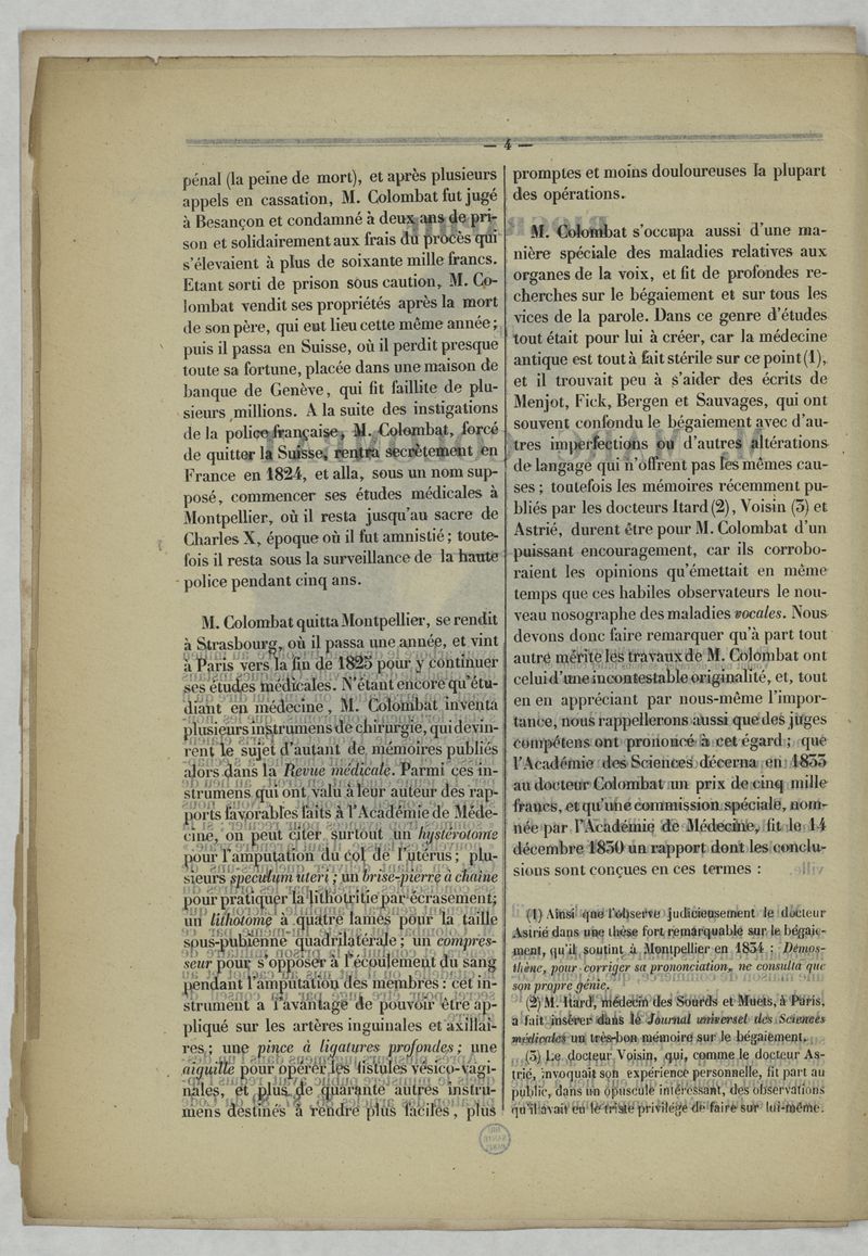 [Dossier biographique de Marc Colombat, de l'Isère, docteur en médecine à Paris]