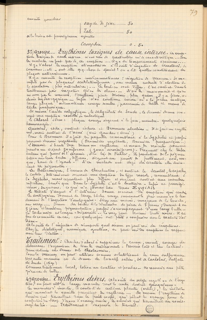 Cours de médecine de la Faculté de Paris par l'étudiant en médecine Roger Bonnaud : Cours de médecine