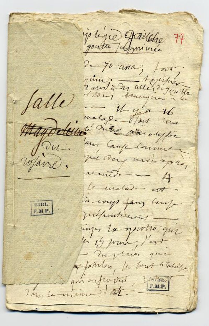 Observations prises à l'Hôtel-Dieu : 1° Observations rédigées par Bichat, salles Agnès, Anne, Denis et Come, Jeanne, Joseph, Martino, du Rosaire, Roch et Antoine