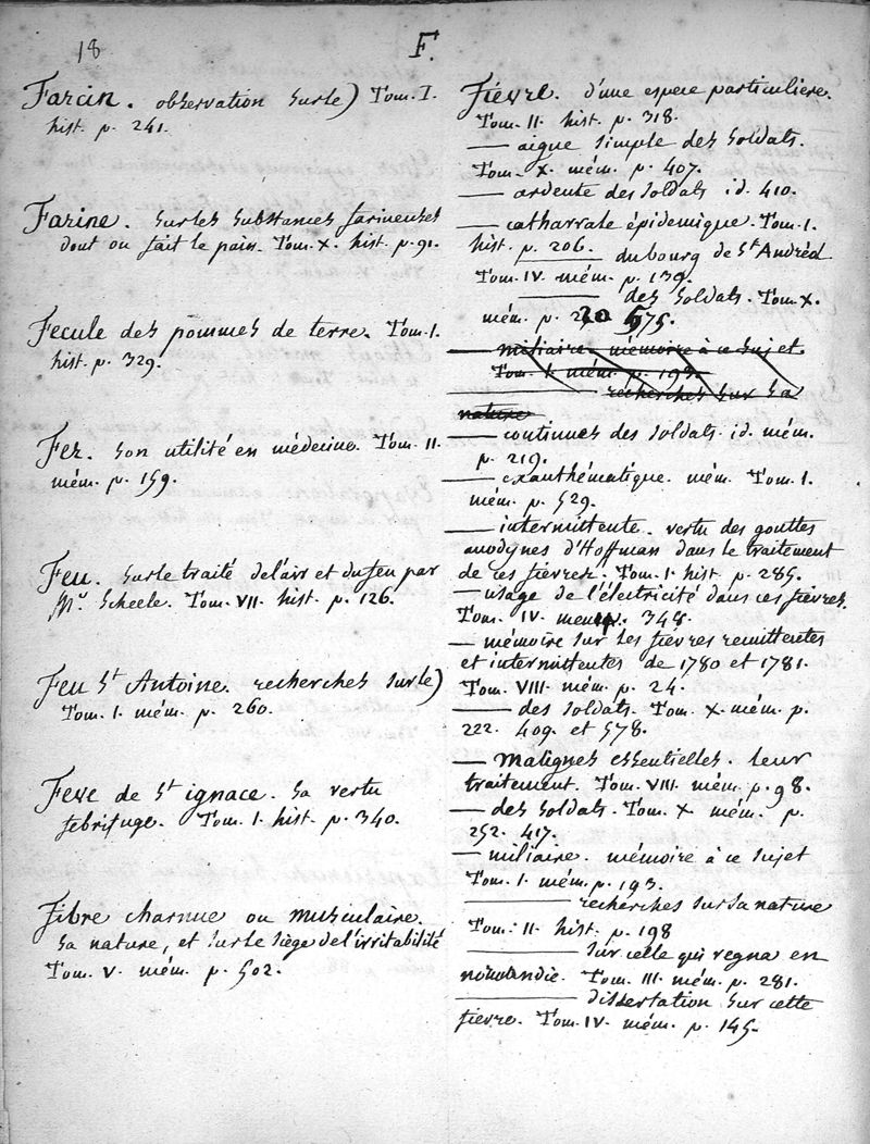 Table des matières contenues dans les dix volumes des mémoires de la Société royale de médecine
