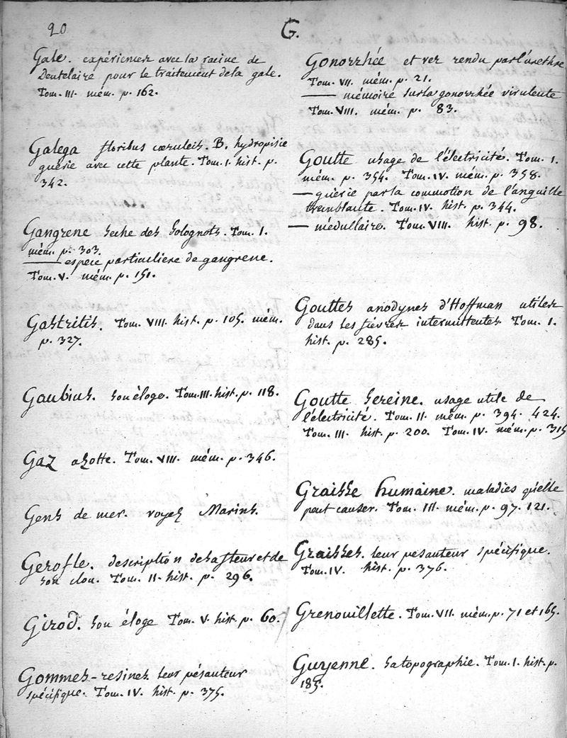 Table des matières contenues dans les dix volumes des mémoires de la Société royale de médecine