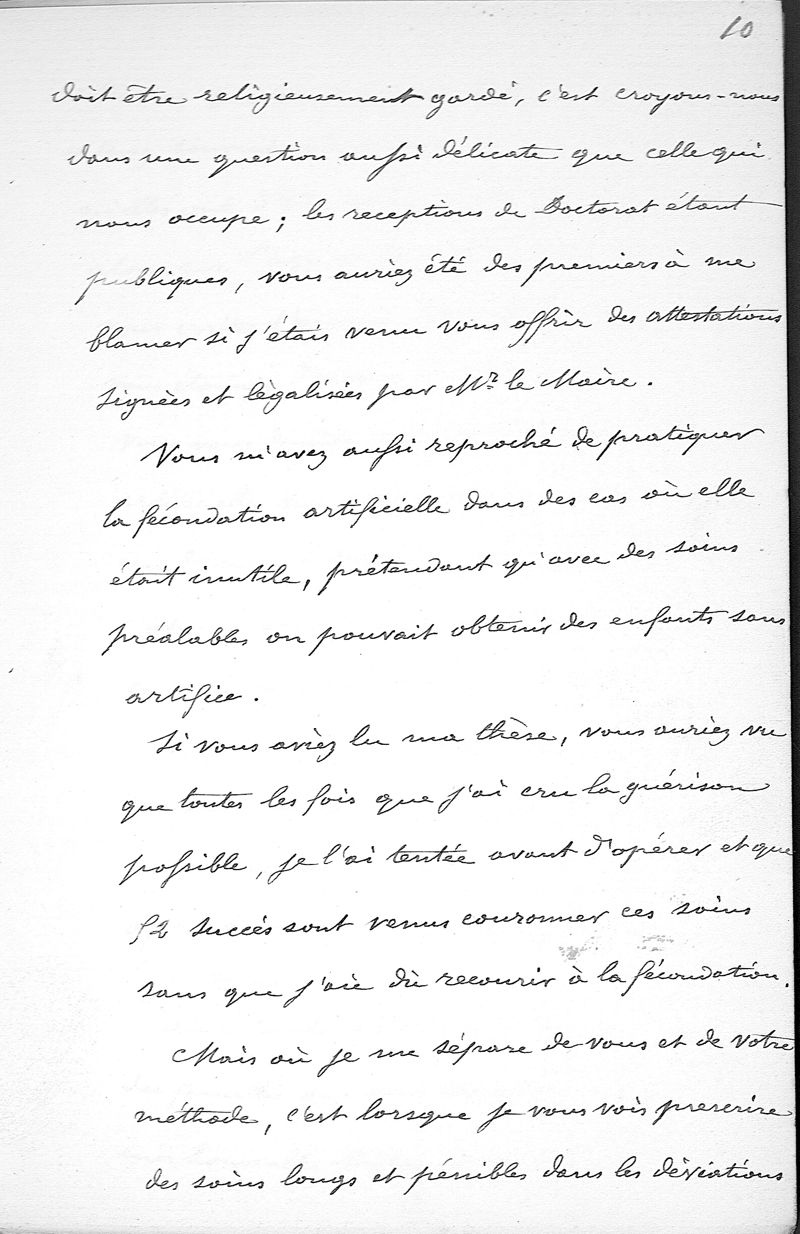 De la Fécondation artificielle (Thèse refusée)