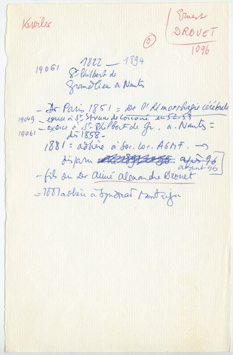 Papiers scientifiques de Jacques Léonard (1935-1988) : boîtes contenant par ordre alphabétique 3716 fiches biographiques portant sur des médecins de l'ouest de la France au XIXe siècle