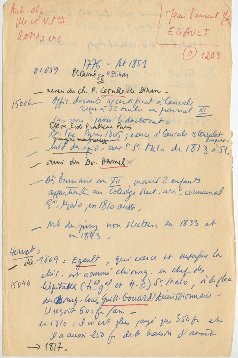 Papiers scientifiques de Jacques Léonard (1935-1988) : boîtes contenant par ordre alphabétique 3716 fiches biographiques portant sur des médecins de l'ouest de la France au XIXe siècle