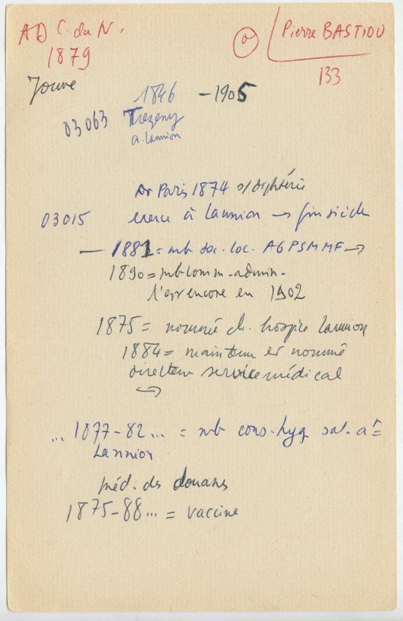 Papiers scientifiques de Jacques Léonard (1935-1988) : boîtes contenant par ordre alphabétique 3716 fiches biographiques portant sur des médecins de l'ouest de la France au XIXe siècle