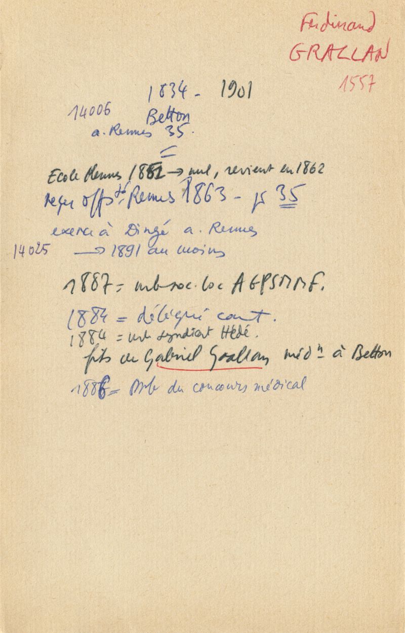 Papiers scientifiques de Jacques Léonard (1935-1988) : boîtes contenant par ordre alphabétique 3716 fiches biographiques portant sur des médecins de l'ouest de la France au XIXe siècle