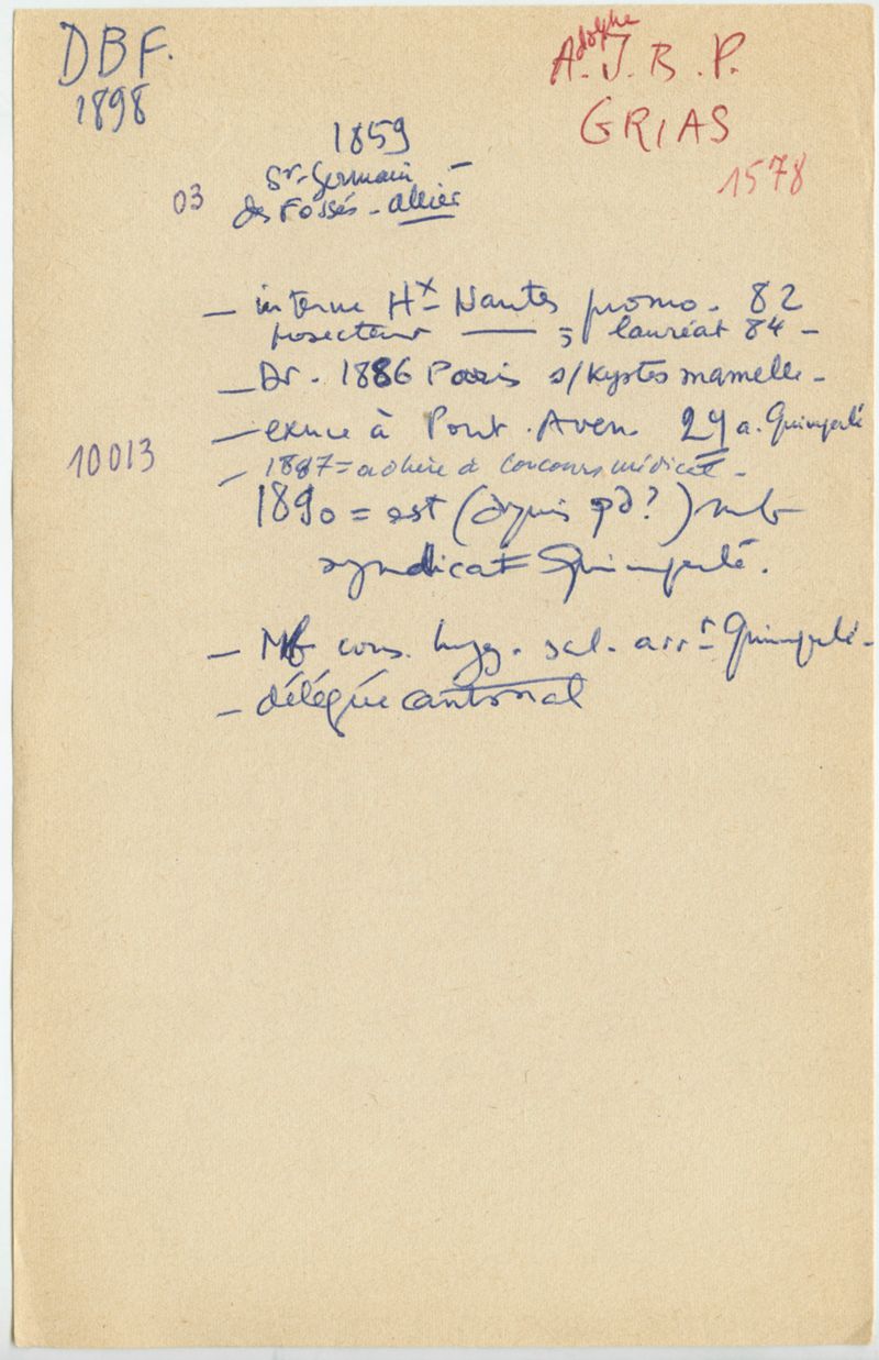 Papiers scientifiques de Jacques Léonard (1935-1988) : boîtes contenant par ordre alphabétique 3716 fiches biographiques portant sur des médecins de l'ouest de la France au XIXe siècle