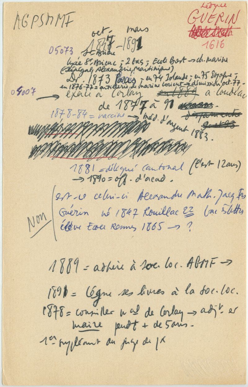 Papiers scientifiques de Jacques Léonard (1935-1988) : boîtes contenant par ordre alphabétique 3716 fiches biographiques portant sur des médecins de l'ouest de la France au XIXe siècle