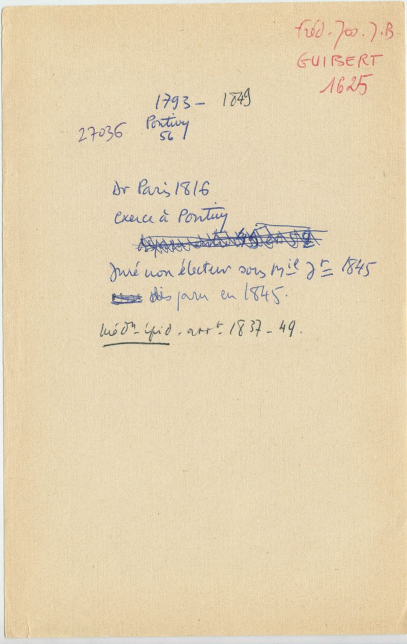 Papiers scientifiques de Jacques Léonard (1935-1988) : boîtes contenant par ordre alphabétique 3716 fiches biographiques portant sur des médecins de l'ouest de la France au XIXe siècle