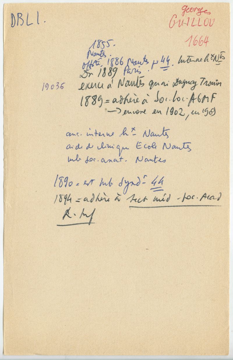 Papiers scientifiques de Jacques Léonard (1935-1988) : boîtes contenant par ordre alphabétique 3716 fiches biographiques portant sur des médecins de l'ouest de la France au XIXe siècle