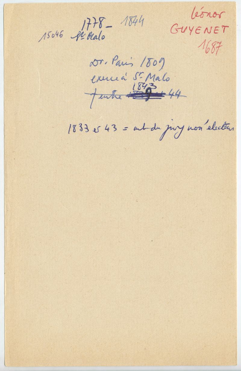 Papiers scientifiques de Jacques Léonard (1935-1988) : boîtes contenant par ordre alphabétique 3716 fiches biographiques portant sur des médecins de l'ouest de la France au XIXe siècle