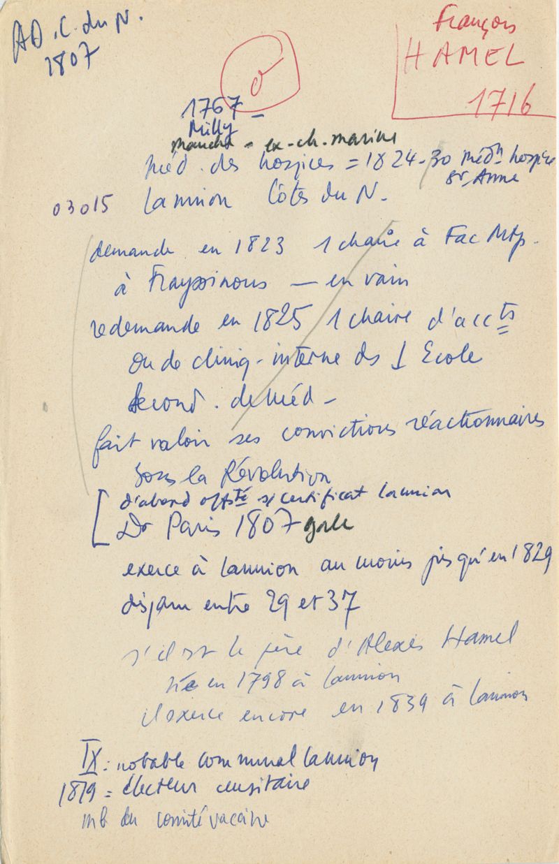 Papiers scientifiques de Jacques Léonard (1935-1988) : boîtes contenant par ordre alphabétique 3716 fiches biographiques portant sur des médecins de l'ouest de la France au XIXe siècle