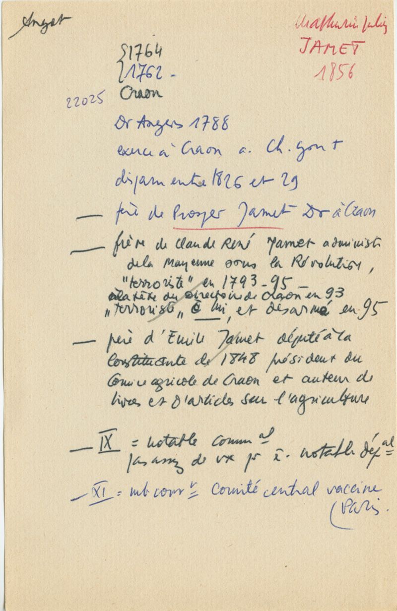 Papiers scientifiques de Jacques Léonard (1935-1988) : boîtes contenant par ordre alphabétique 3716 fiches biographiques portant sur des médecins de l'ouest de la France au XIXe siècle
