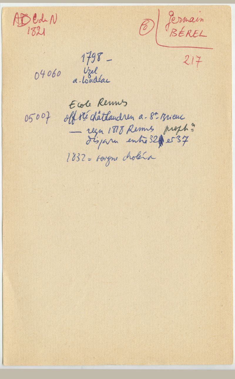 Papiers scientifiques de Jacques Léonard (1935-1988) : boîtes contenant par ordre alphabétique 3716 fiches biographiques portant sur des médecins de l'ouest de la France au XIXe siècle