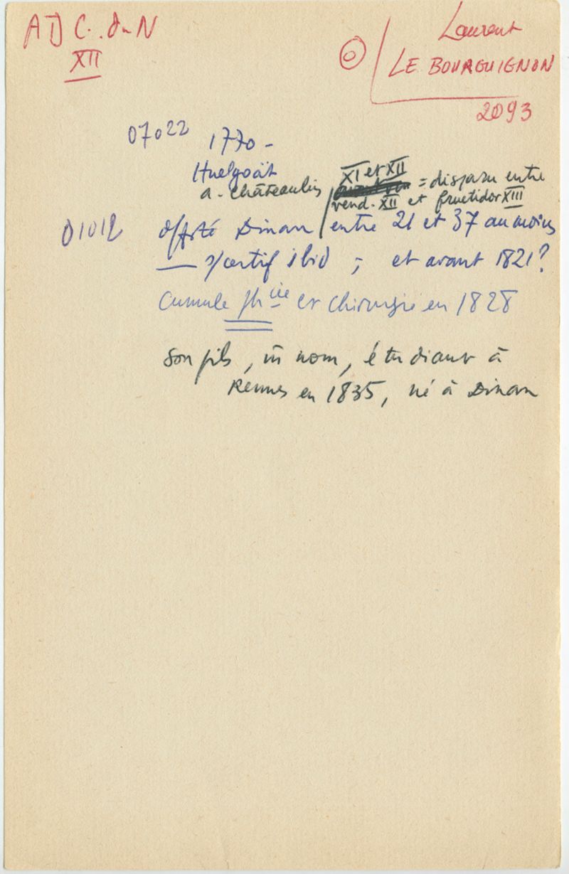 Papiers scientifiques de Jacques Léonard (1935-1988) : boîtes contenant par ordre alphabétique 3716 fiches biographiques portant sur des médecins de l'ouest de la France au XIXe siècle