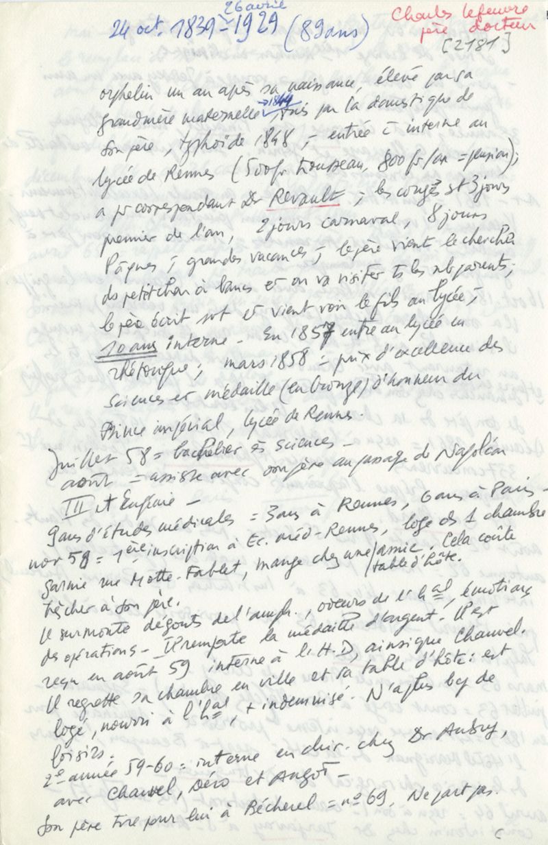 Papiers scientifiques de Jacques Léonard (1935-1988) : boîtes contenant par ordre alphabétique 3716 fiches biographiques portant sur des médecins de l'ouest de la France au XIXe siècle