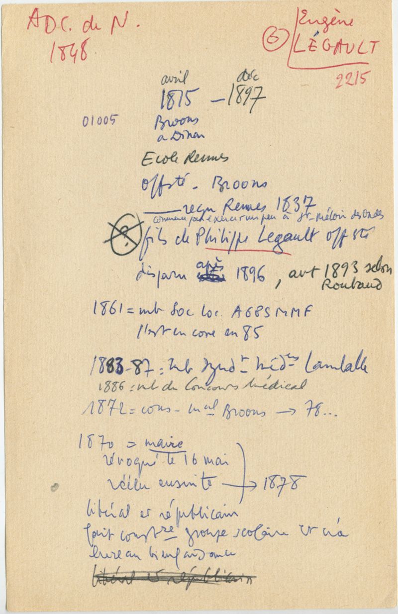 Papiers scientifiques de Jacques Léonard (1935-1988) : boîtes contenant par ordre alphabétique 3716 fiches biographiques portant sur des médecins de l'ouest de la France au XIXe siècle