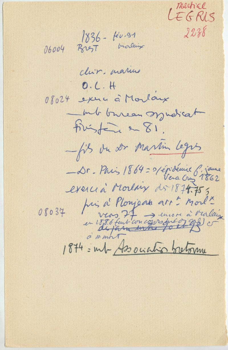 Papiers scientifiques de Jacques Léonard (1935-1988) : boîtes contenant par ordre alphabétique 3716 fiches biographiques portant sur des médecins de l'ouest de la France au XIXe siècle