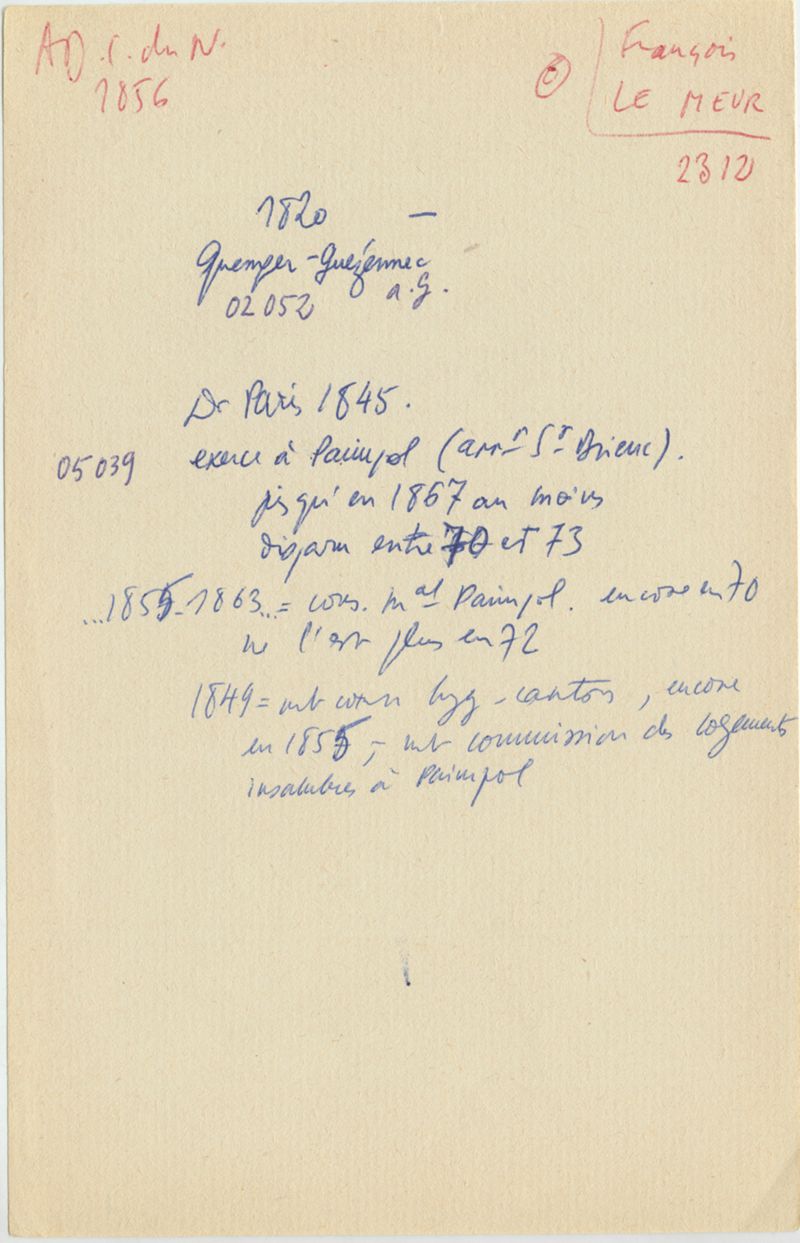 Papiers scientifiques de Jacques Léonard (1935-1988) : boîtes contenant par ordre alphabétique 3716 fiches biographiques portant sur des médecins de l'ouest de la France au XIXe siècle