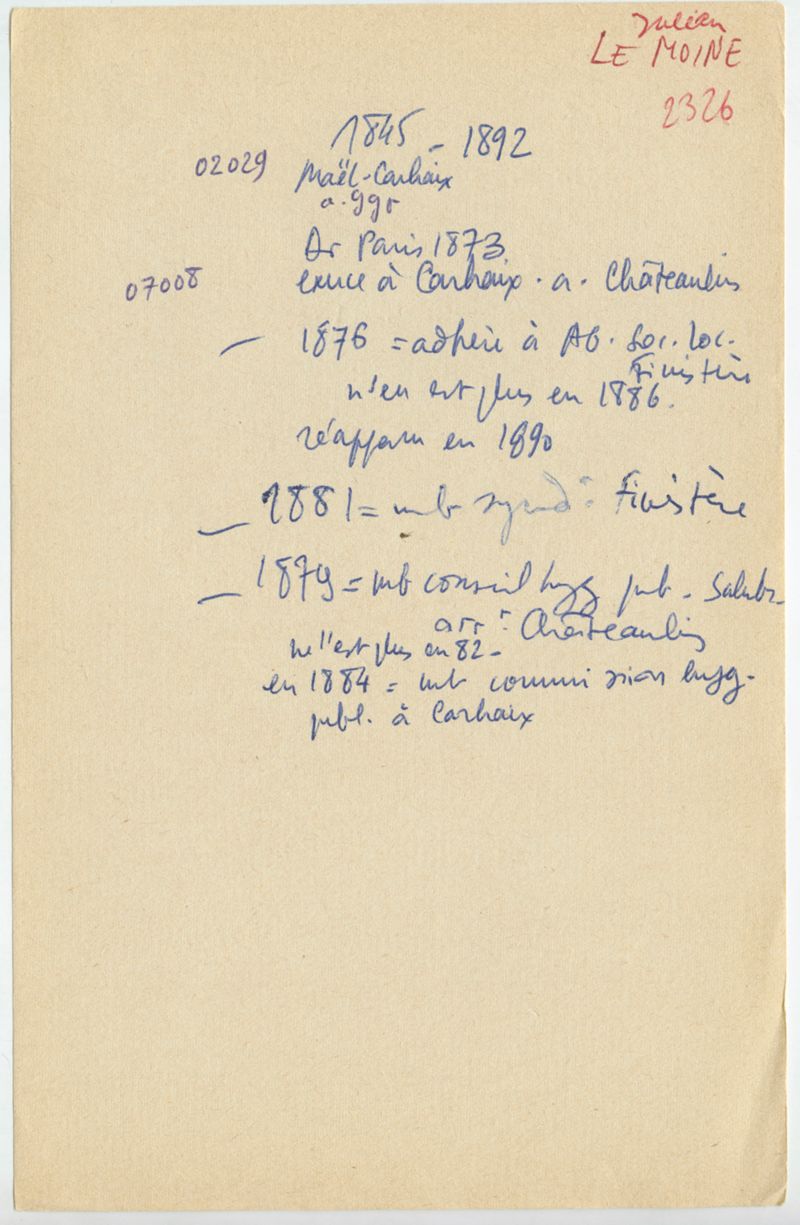 Papiers scientifiques de Jacques Léonard (1935-1988) : boîtes contenant par ordre alphabétique 3716 fiches biographiques portant sur des médecins de l'ouest de la France au XIXe siècle