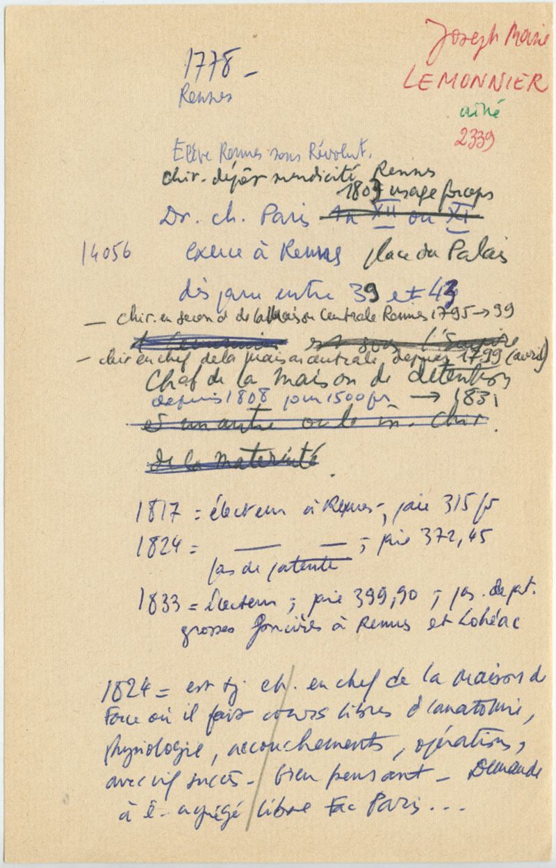 Papiers scientifiques de Jacques Léonard (1935-1988) : boîtes contenant par ordre alphabétique 3716 fiches biographiques portant sur des médecins de l'ouest de la France au XIXe siècle