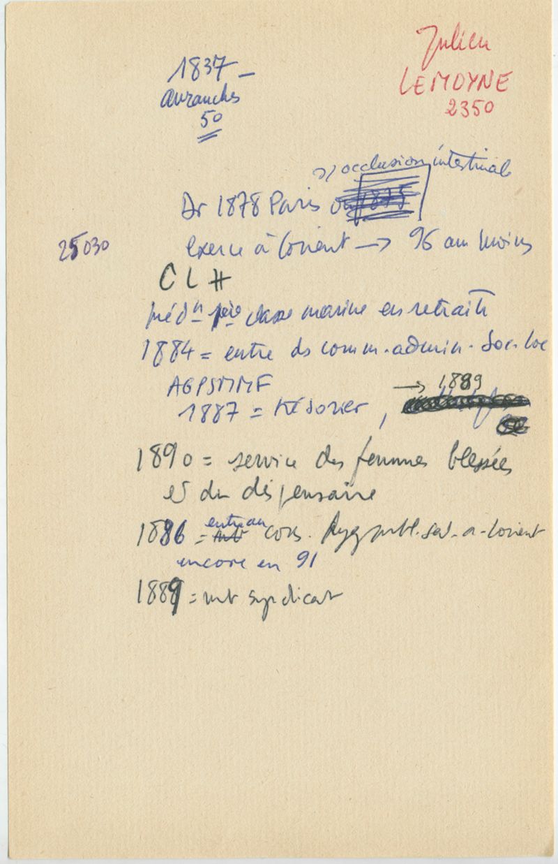 Papiers scientifiques de Jacques Léonard (1935-1988) : boîtes contenant par ordre alphabétique 3716 fiches biographiques portant sur des médecins de l'ouest de la France au XIXe siècle