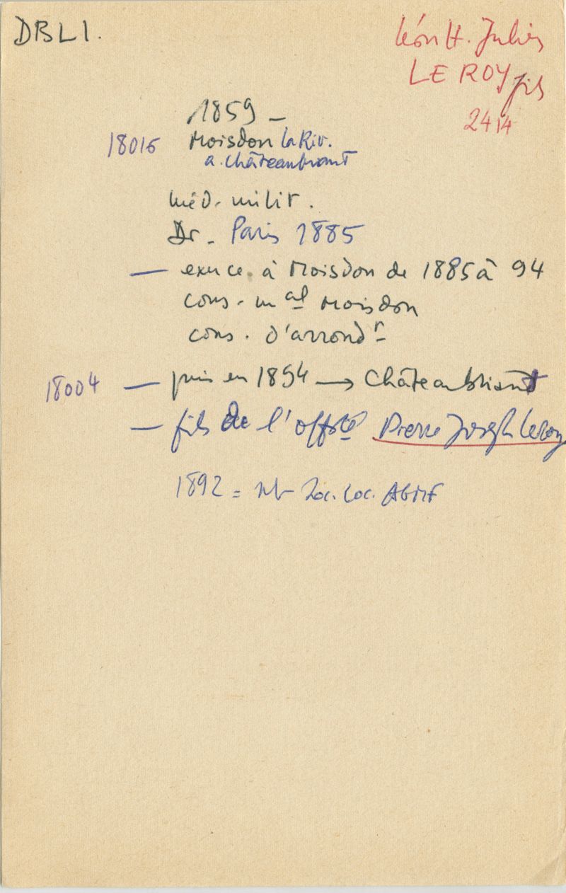 Papiers scientifiques de Jacques Léonard (1935-1988) : boîtes contenant par ordre alphabétique 3716 fiches biographiques portant sur des médecins de l'ouest de la France au XIXe siècle