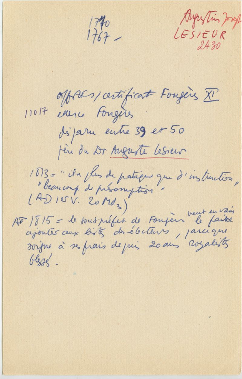 Papiers scientifiques de Jacques Léonard (1935-1988) : boîtes contenant par ordre alphabétique 3716 fiches biographiques portant sur des médecins de l'ouest de la France au XIXe siècle