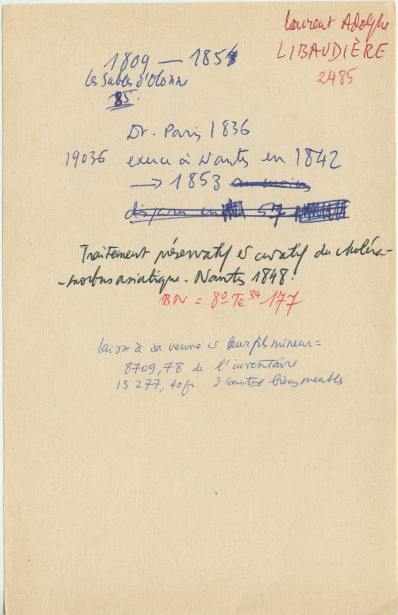 Papiers scientifiques de Jacques Léonard (1935-1988) : boîtes contenant par ordre alphabétique 3716 fiches biographiques portant sur des médecins de l'ouest de la France au XIXe siècle