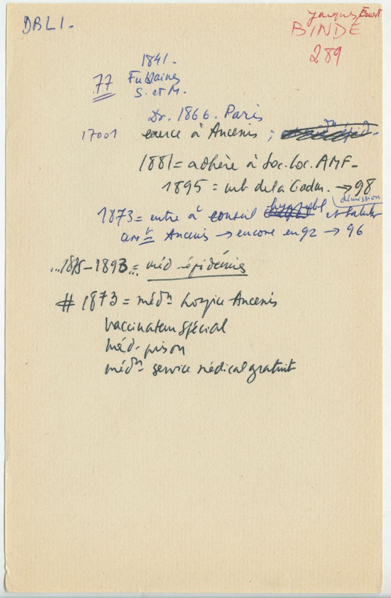 Papiers scientifiques de Jacques Léonard (1935-1988) : boîtes contenant par ordre alphabétique 3716 fiches biographiques portant sur des médecins de l'ouest de la France au XIXe siècle