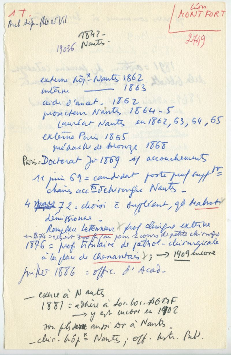 Papiers scientifiques de Jacques Léonard (1935-1988) : boîtes contenant par ordre alphabétique 3716 fiches biographiques portant sur des médecins de l'ouest de la France au XIXe siècle