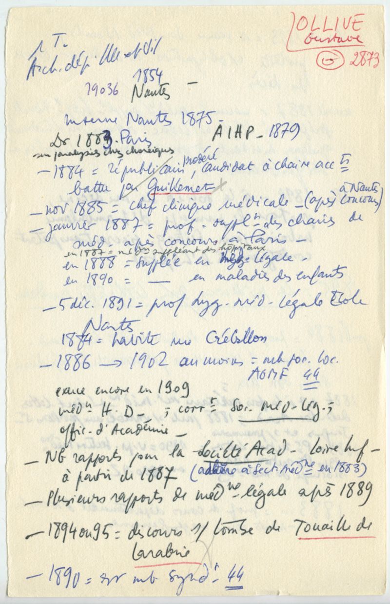 Papiers scientifiques de Jacques Léonard (1935-1988) : boîtes contenant par ordre alphabétique 3716 fiches biographiques portant sur des médecins de l'ouest de la France au XIXe siècle