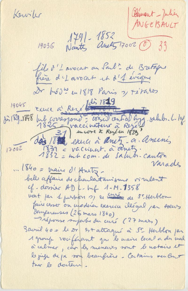 Papiers scientifiques de Jacques Léonard (1935-1988) : boîtes contenant par ordre alphabétique 3716 fiches biographiques portant sur des médecins de l'ouest de la France au XIXe siècle