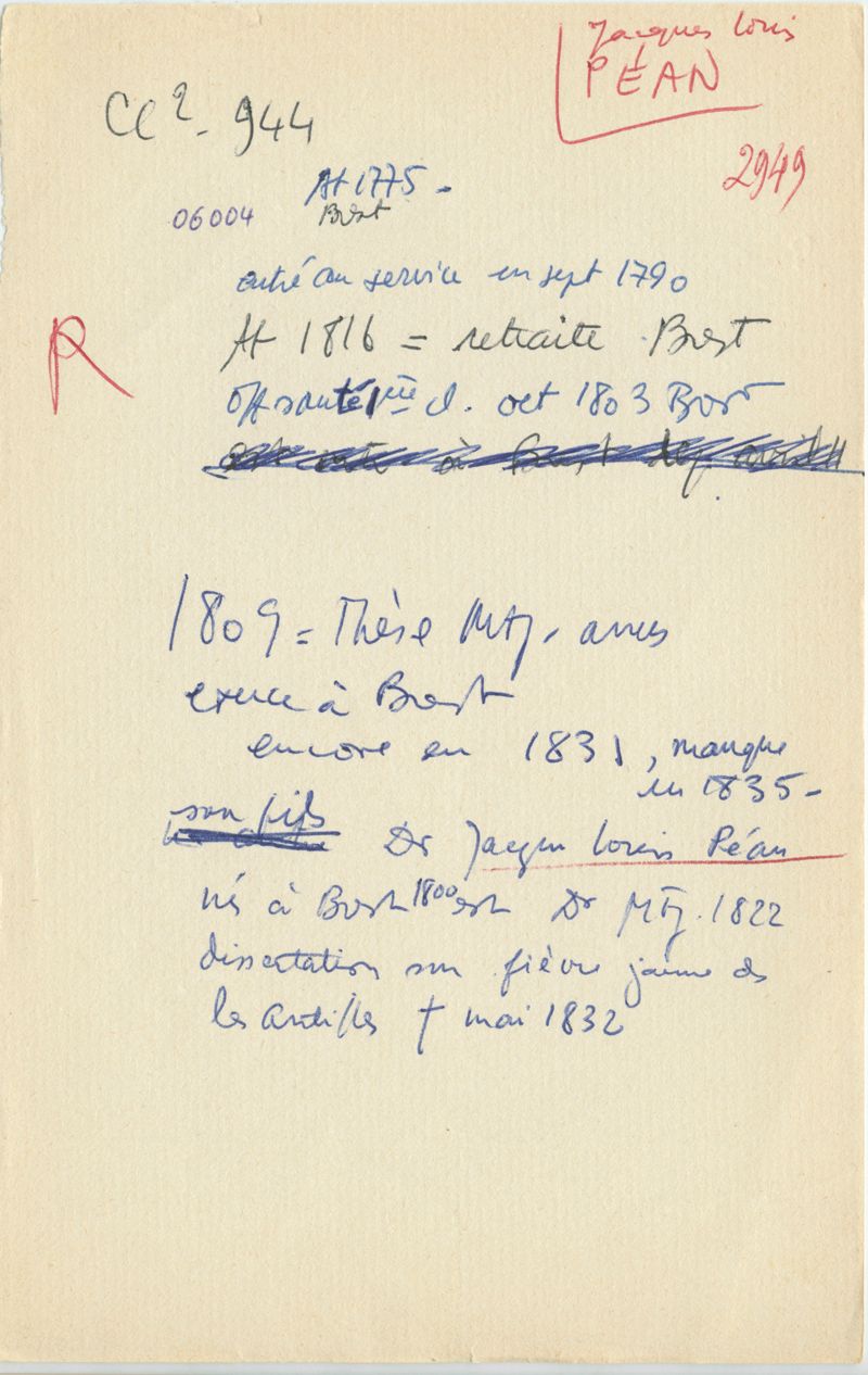 Papiers scientifiques de Jacques Léonard (1935-1988) : boîtes contenant par ordre alphabétique 3716 fiches biographiques portant sur des médecins de l'ouest de la France au XIXe siècle