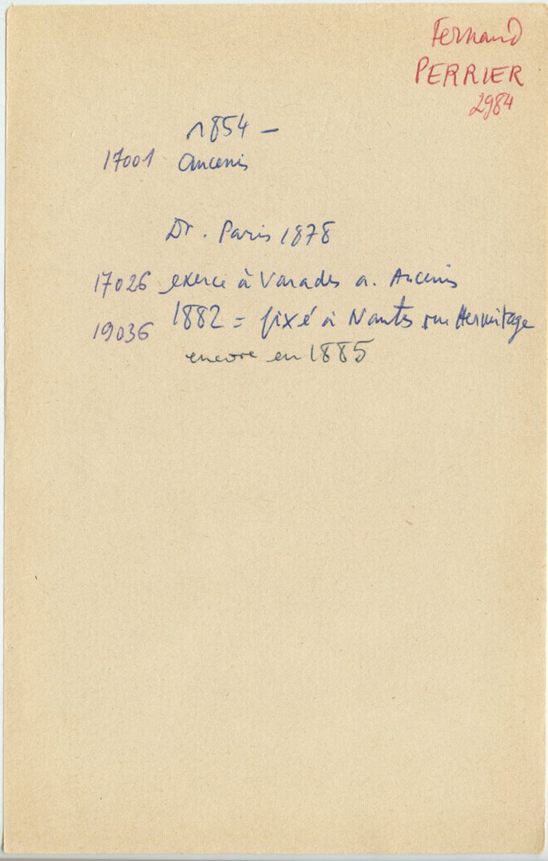 Papiers scientifiques de Jacques Léonard (1935-1988) : boîtes contenant par ordre alphabétique 3716 fiches biographiques portant sur des médecins de l'ouest de la France au XIXe siècle