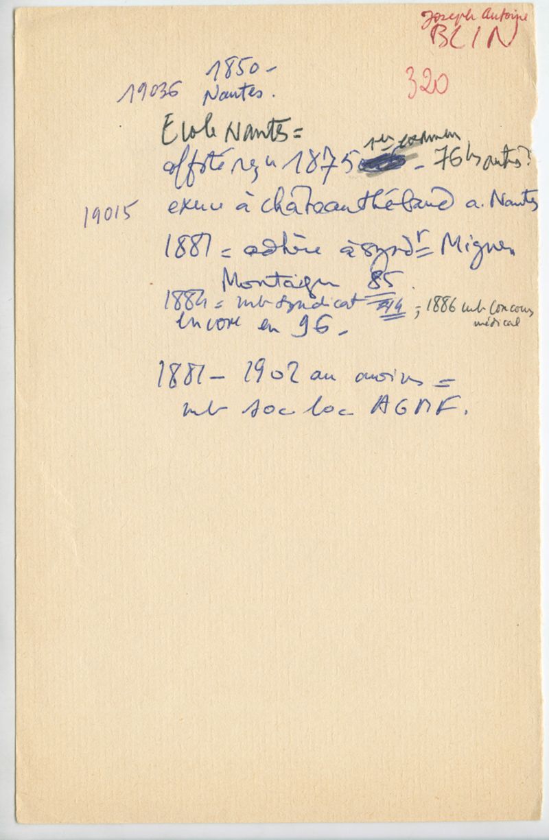 Papiers scientifiques de Jacques Léonard (1935-1988) : boîtes contenant par ordre alphabétique 3716 fiches biographiques portant sur des médecins de l'ouest de la France au XIXe siècle