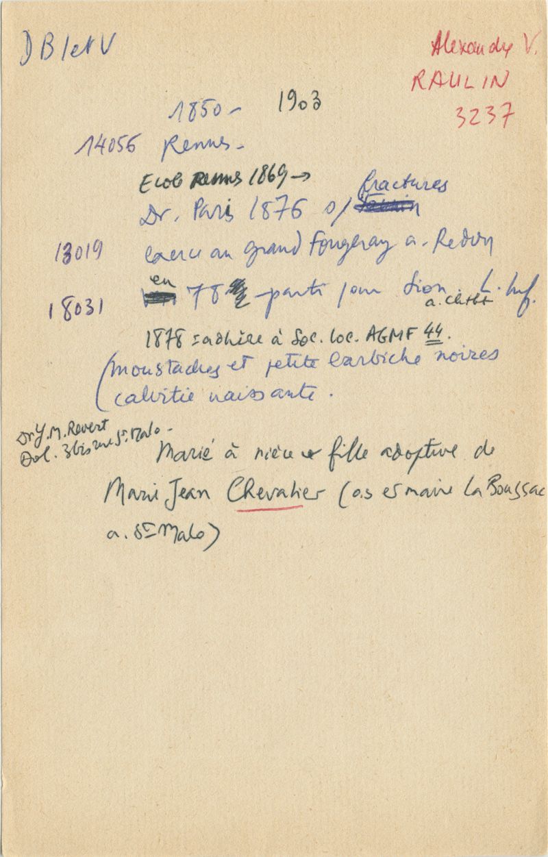 Papiers scientifiques de Jacques Léonard (1935-1988) : boîtes contenant par ordre alphabétique 3716 fiches biographiques portant sur des médecins de l'ouest de la France au XIXe siècle