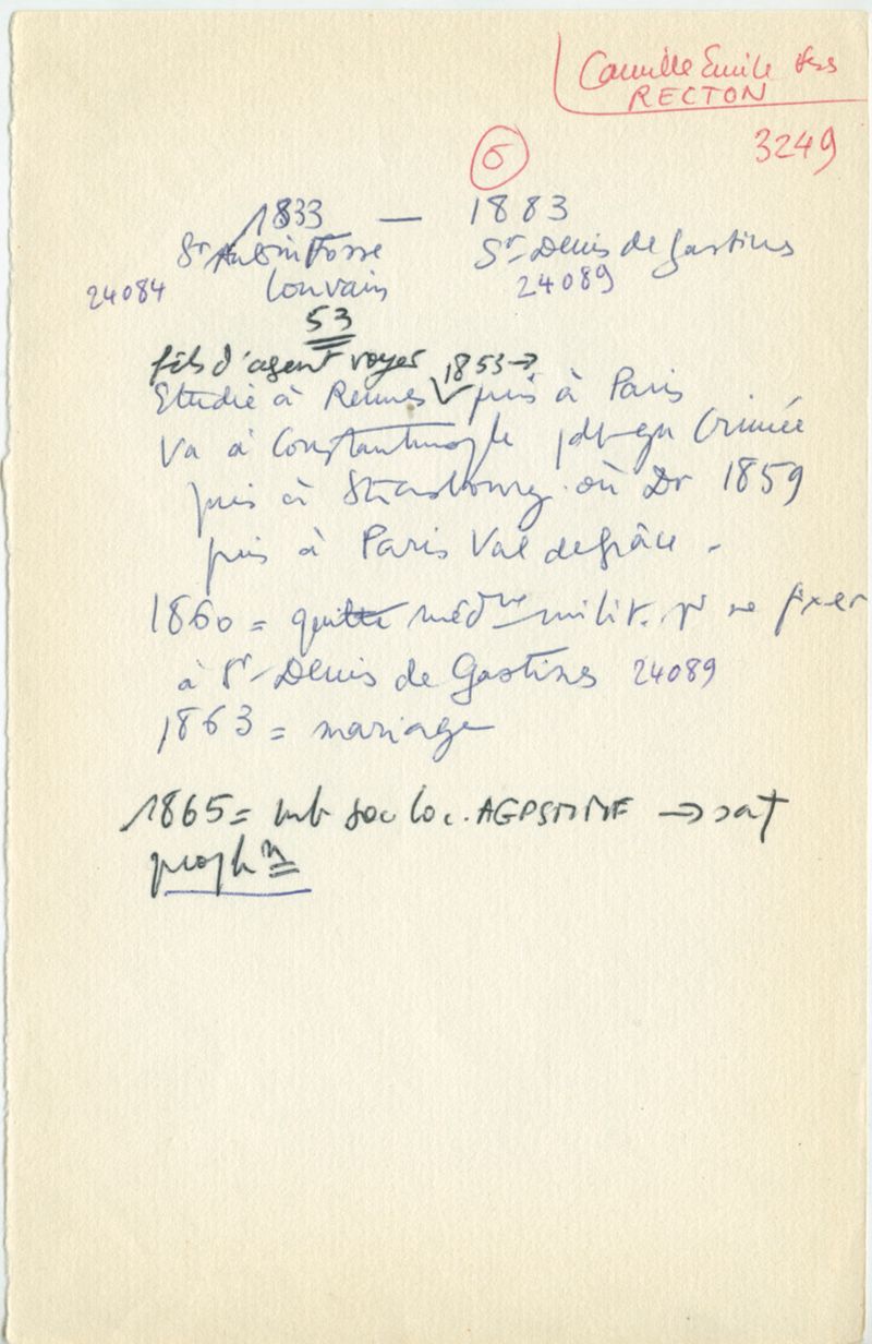 Papiers scientifiques de Jacques Léonard (1935-1988) : boîtes contenant par ordre alphabétique 3716 fiches biographiques portant sur des médecins de l'ouest de la France au XIXe siècle