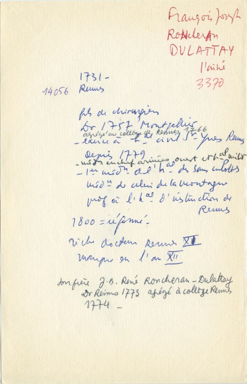 Papiers scientifiques de Jacques Léonard (1935-1988) : boîtes contenant par ordre alphabétique 3716 fiches biographiques portant sur des médecins de l'ouest de la France au XIXe siècle