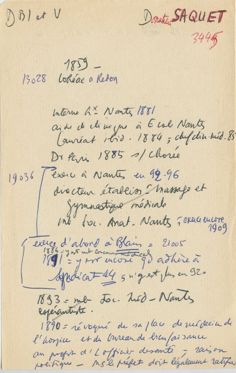 Papiers scientifiques de Jacques Léonard (1935-1988) : boîtes contenant par ordre alphabétique 3716 fiches biographiques portant sur des médecins de l'ouest de la France au XIXe siècle