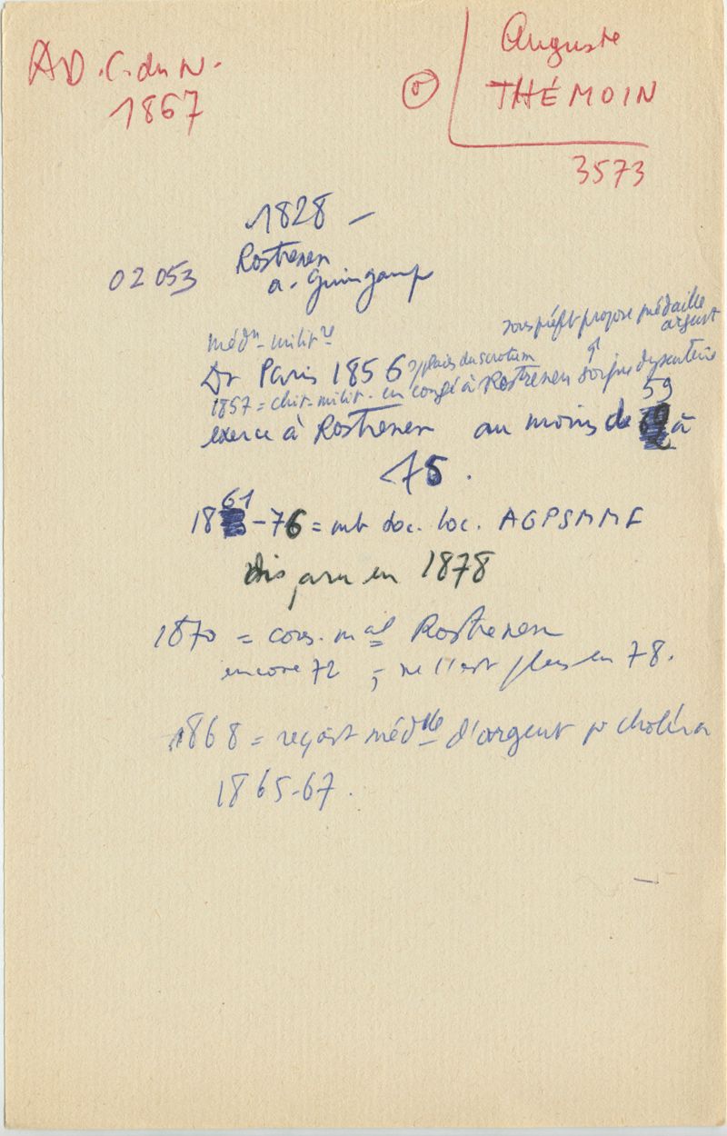Papiers scientifiques de Jacques Léonard (1935-1988) : boîtes contenant par ordre alphabétique 3716 fiches biographiques portant sur des médecins de l'ouest de la France au XIXe siècle