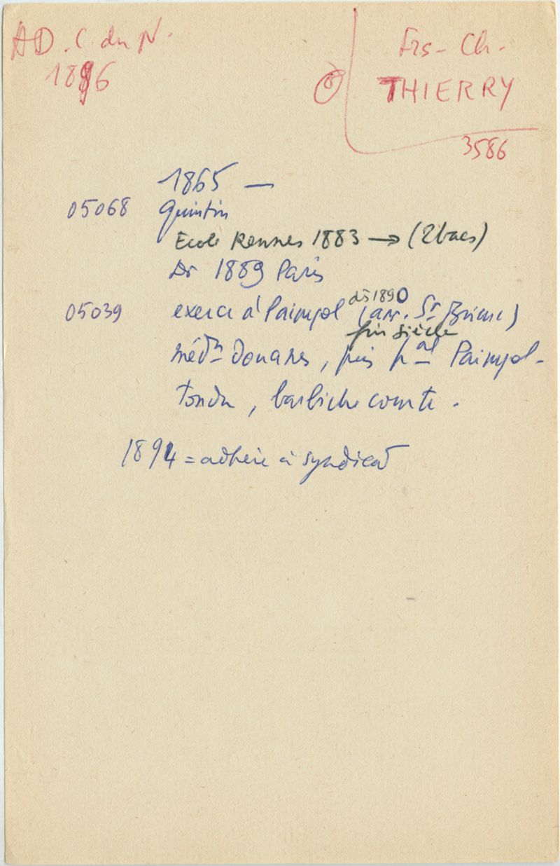 Papiers scientifiques de Jacques Léonard (1935-1988) : boîtes contenant par ordre alphabétique 3716 fiches biographiques portant sur des médecins de l'ouest de la France au XIXe siècle