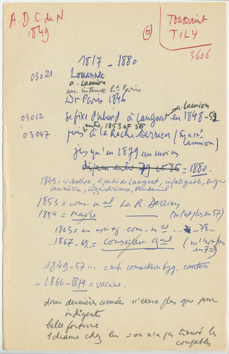 Papiers scientifiques de Jacques Léonard (1935-1988) : boîtes contenant par ordre alphabétique 3716 fiches biographiques portant sur des médecins de l'ouest de la France au XIXe siècle