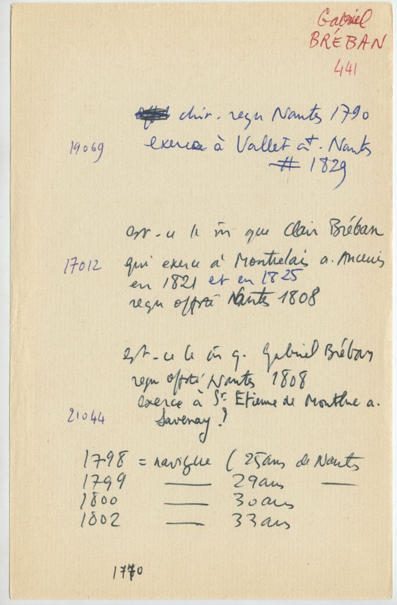 Papiers scientifiques de Jacques Léonard (1935-1988) : boîtes contenant par ordre alphabétique 3716 fiches biographiques portant sur des médecins de l'ouest de la France au XIXe siècle