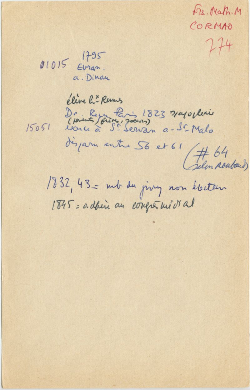 Papiers scientifiques de Jacques Léonard (1935-1988) : boîtes contenant par ordre alphabétique 3716 fiches biographiques portant sur des médecins de l'ouest de la France au XIXe siècle