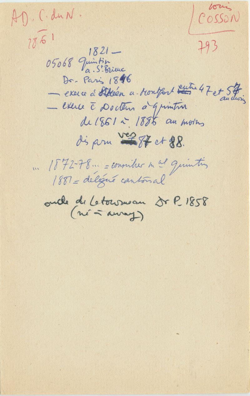 Papiers scientifiques de Jacques Léonard (1935-1988) : boîtes contenant par ordre alphabétique 3716 fiches biographiques portant sur des médecins de l'ouest de la France au XIXe siècle