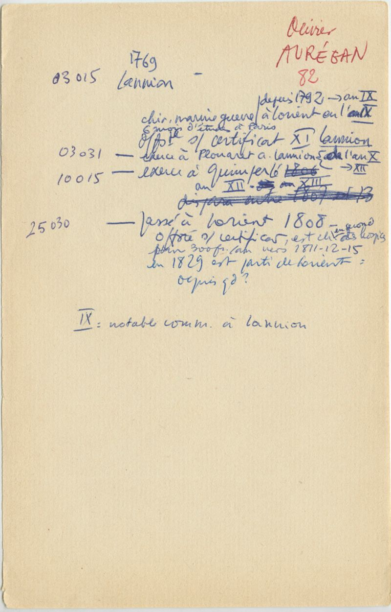 Papiers scientifiques de Jacques Léonard (1935-1988) : boîtes contenant par ordre alphabétique 3716 fiches biographiques portant sur des médecins de l'ouest de la France au XIXe siècle
