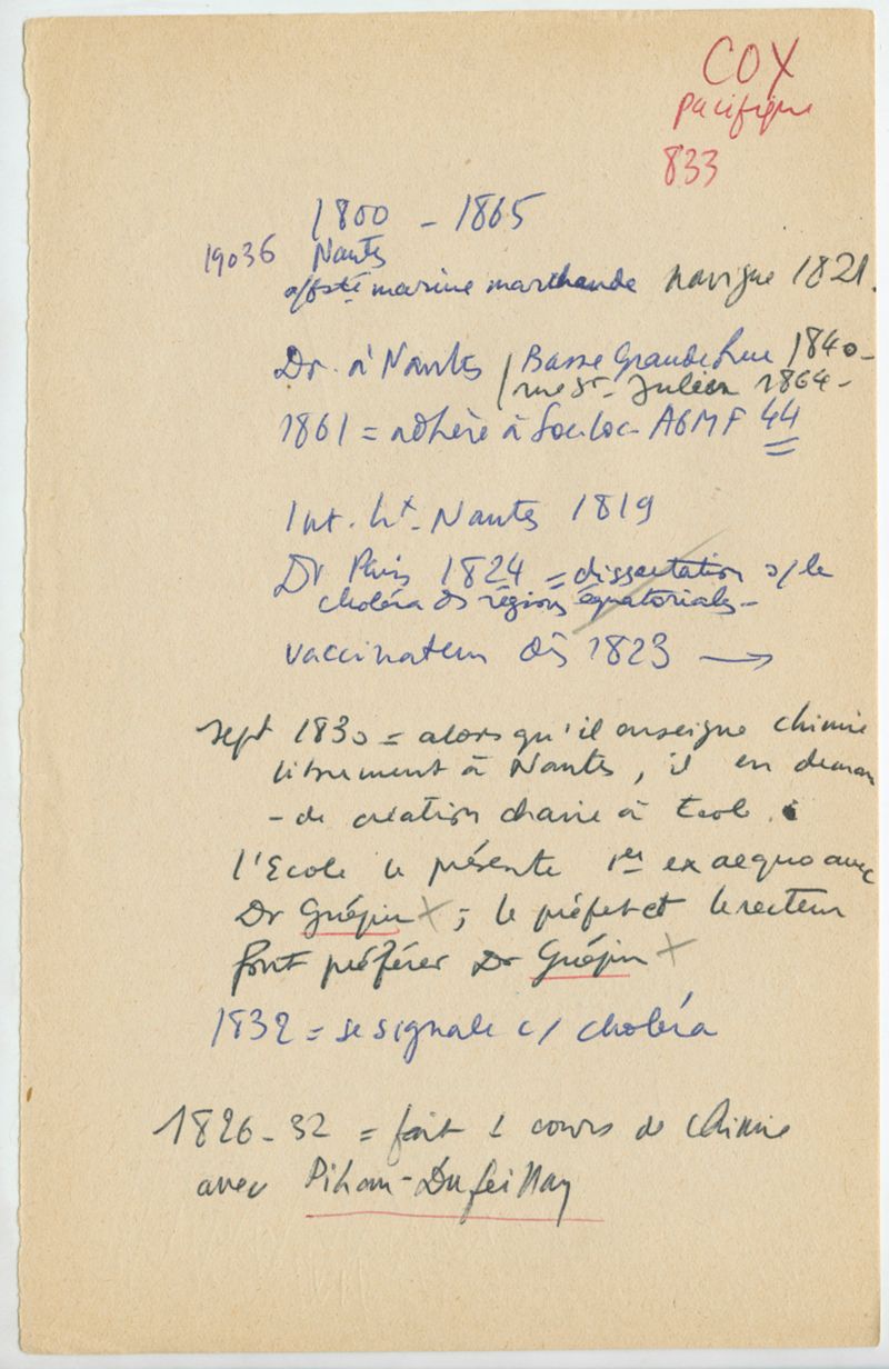 Papiers scientifiques de Jacques Léonard (1935-1988) : boîtes contenant par ordre alphabétique 3716 fiches biographiques portant sur des médecins de l'ouest de la France au XIXe siècle